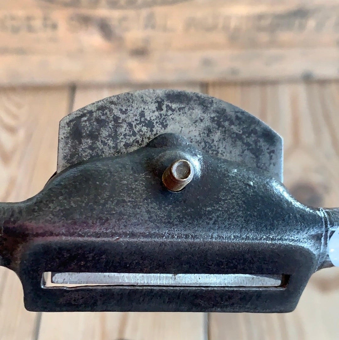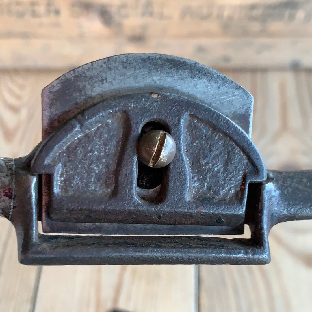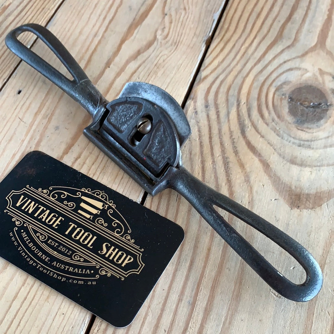 This spokeshave is in authentic vintage condition, wear & tear consistent with age & use, it will require a sharpen prior to use. Looks like replacement brass screw.