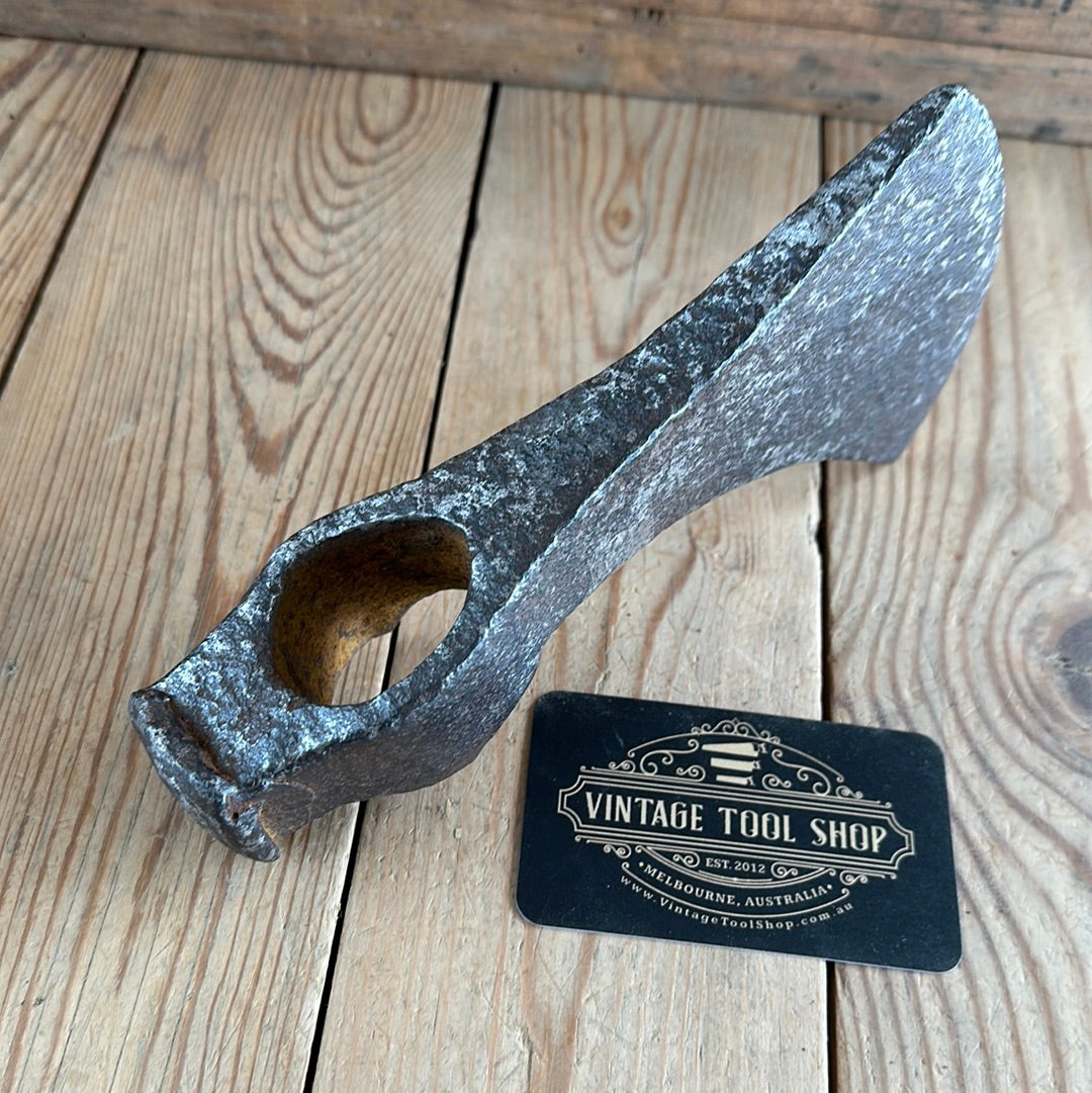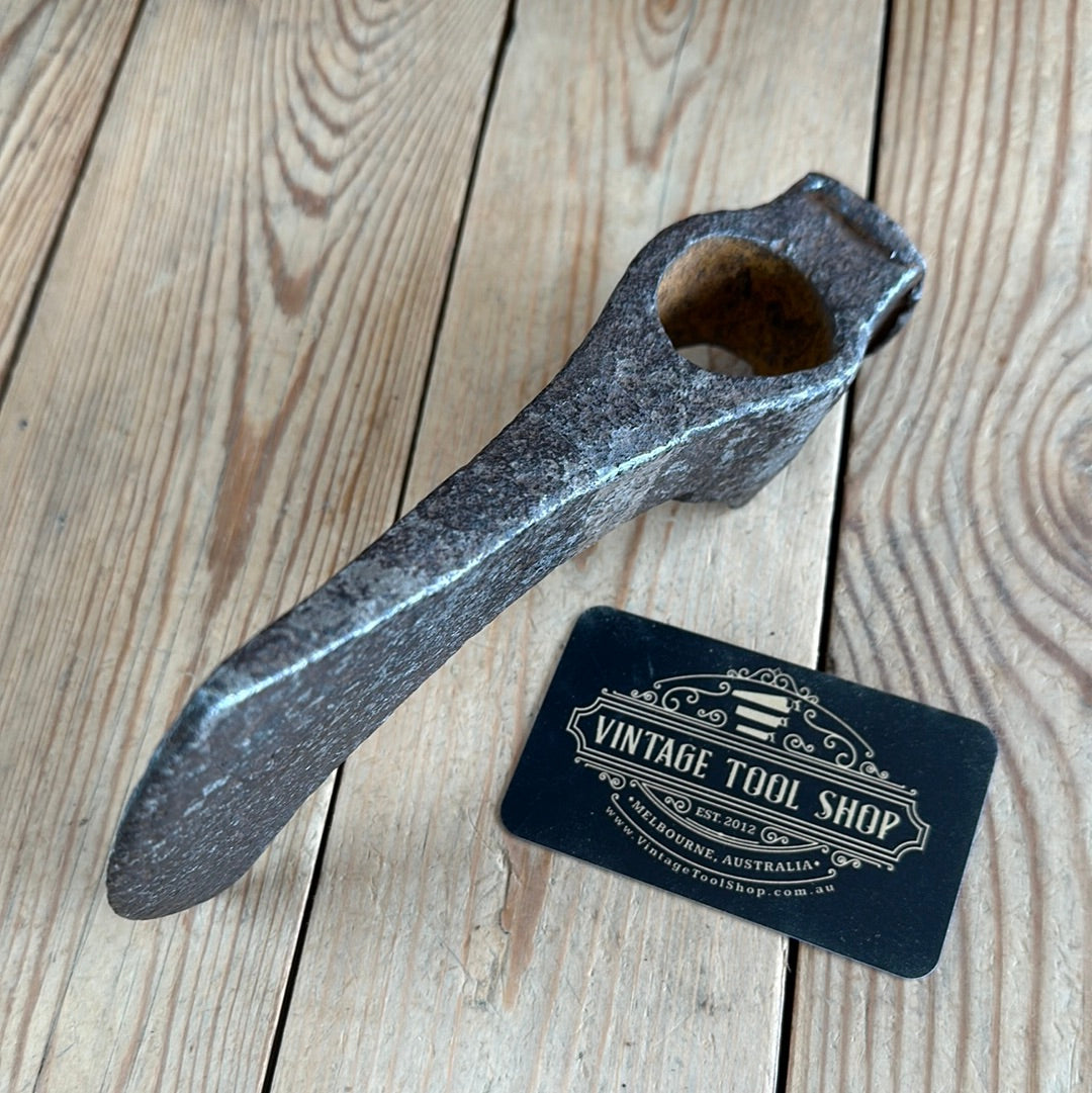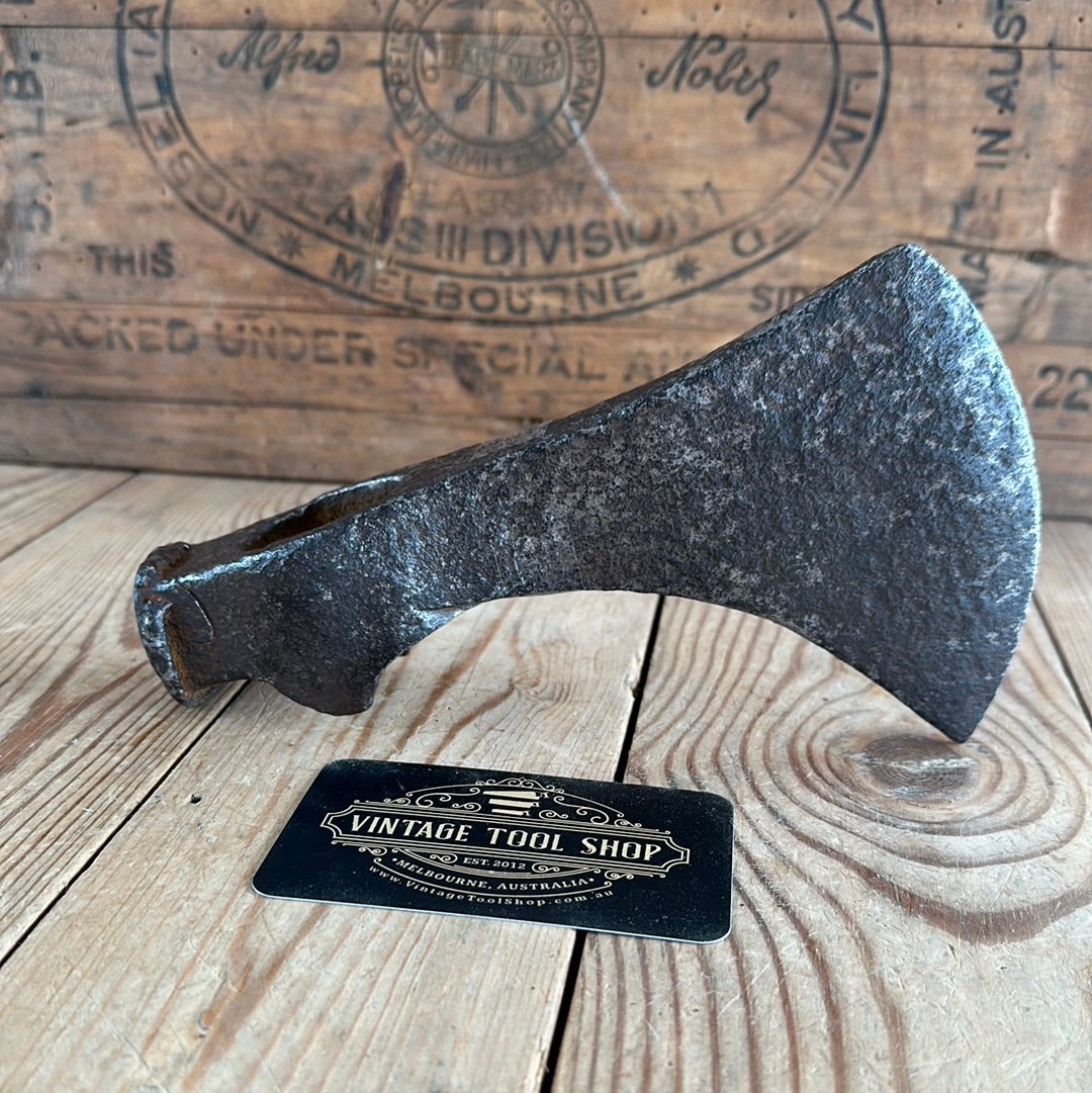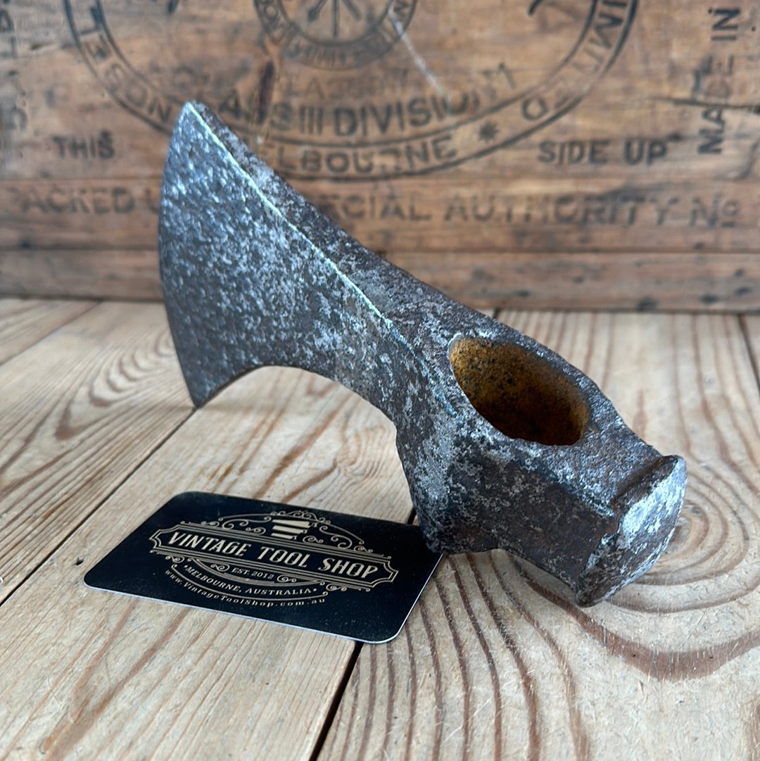 This hatchet head is in authentic antique condition, some pitting as to be expected with an antique tool & mushrooming to the poll. It will require sharpening prior to use. This hatchet head was part of the Longfils tool collection & purchased in France in 2019.