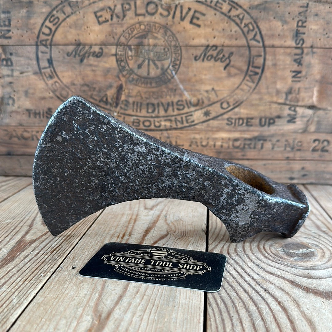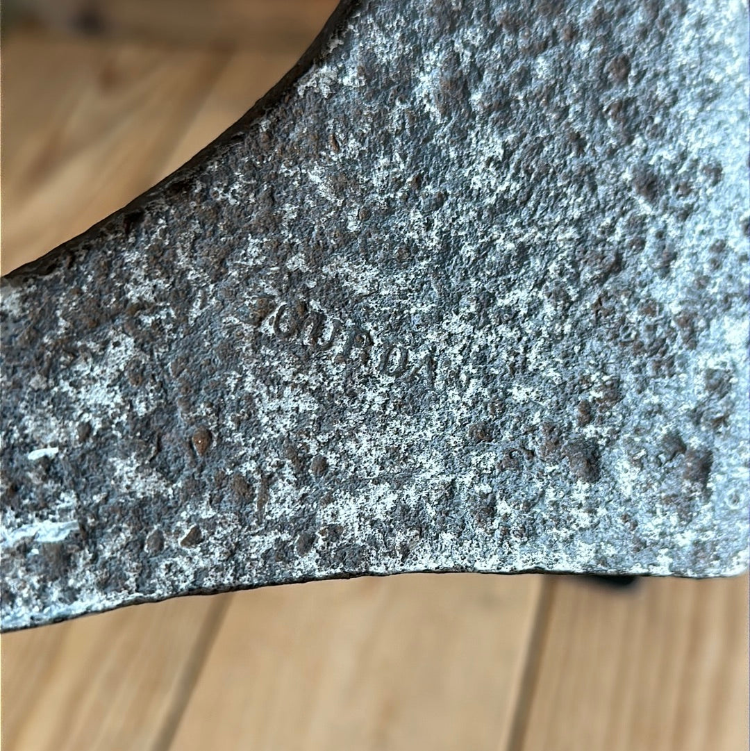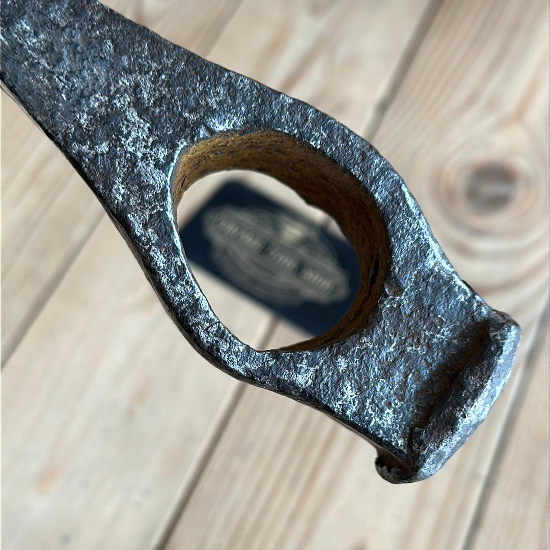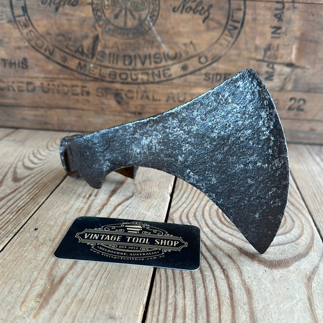 This hatchet head is in authentic antique condition, some pitting as to be expected with an antique tool & mushrooming to the poll. It will require sharpening prior to use. This hatchet head was part of the Longfils tool collection & purchased in France in 2019.