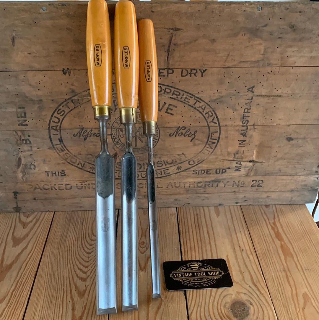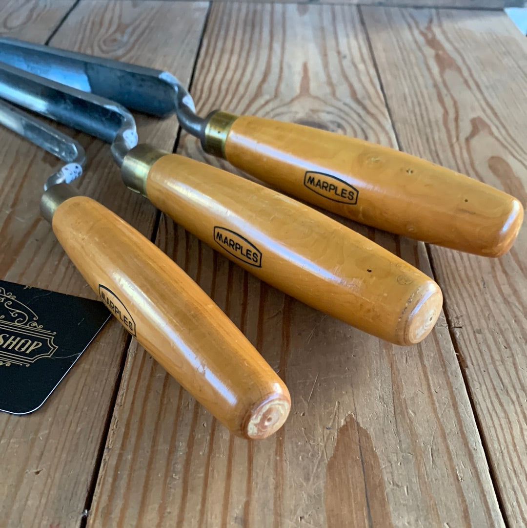 SOLD Z7-23 Vintage 3x MARPLES cranked Gouge CHISELS